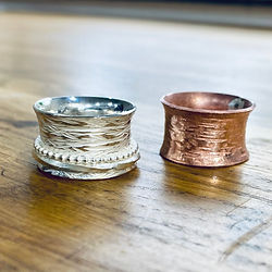 In a small group of no more than 4 students. Using silver learn to make a spinner ring. Copper can be used to practice textures first before making your ring in silver. Suitable for beginners: Age 16+